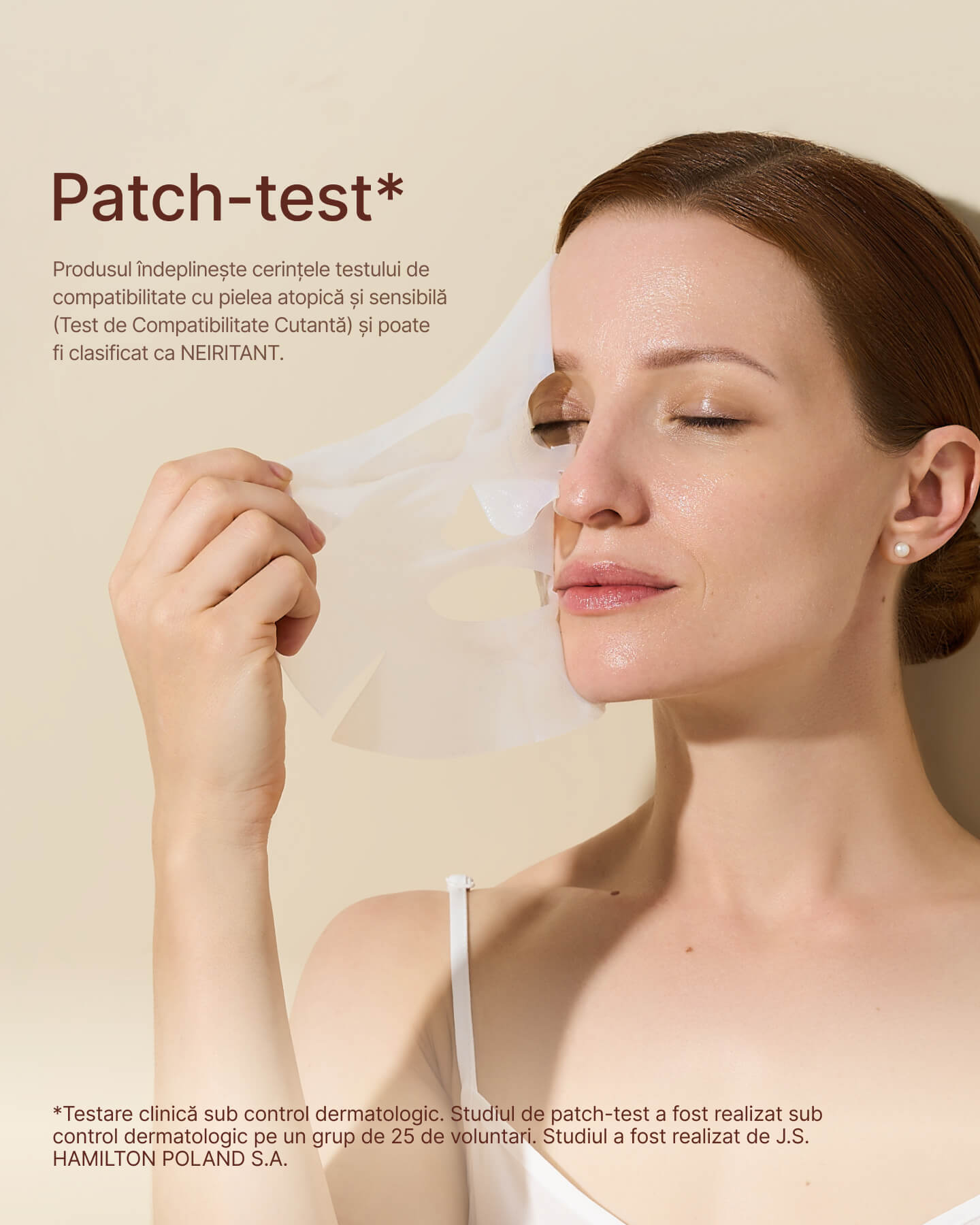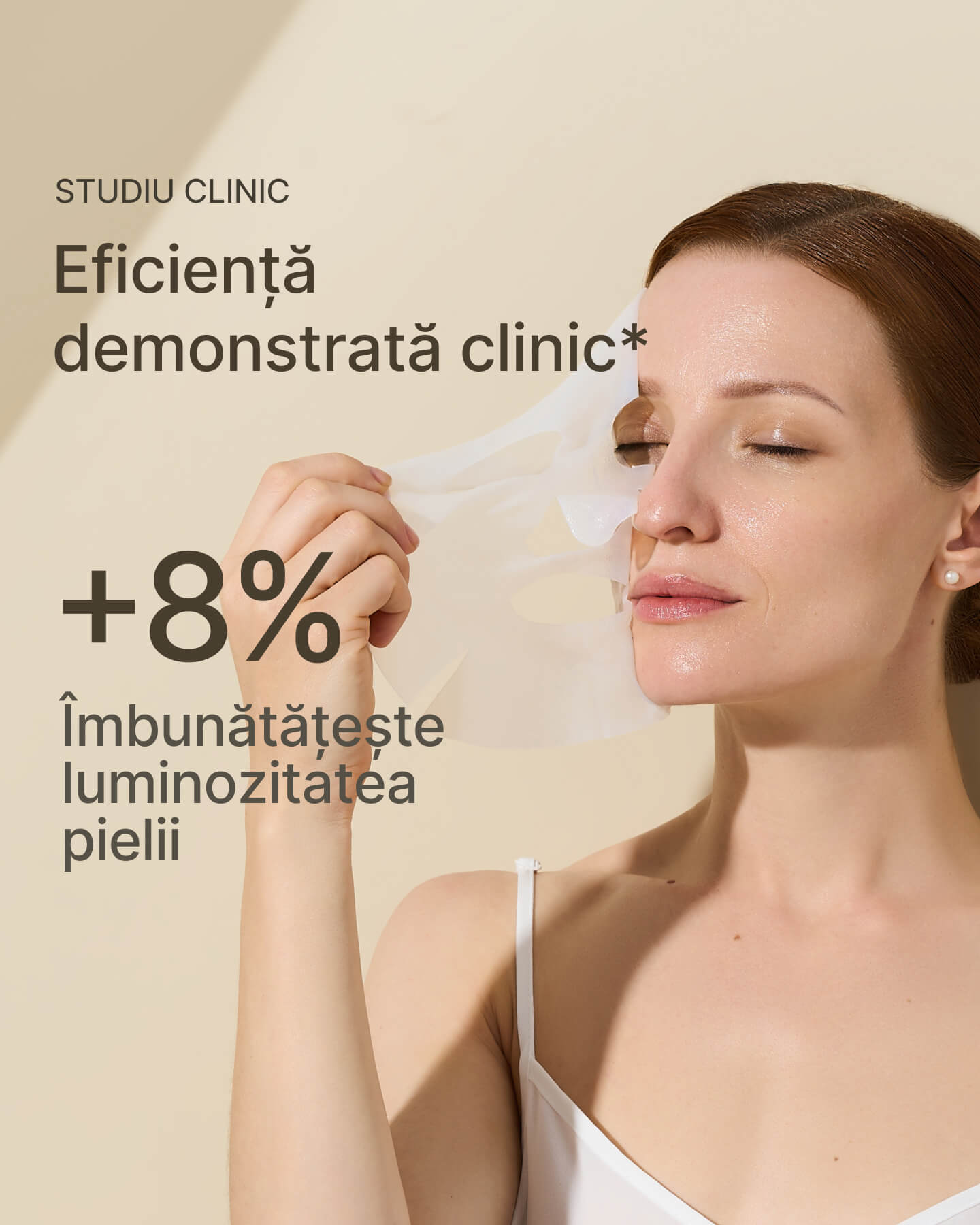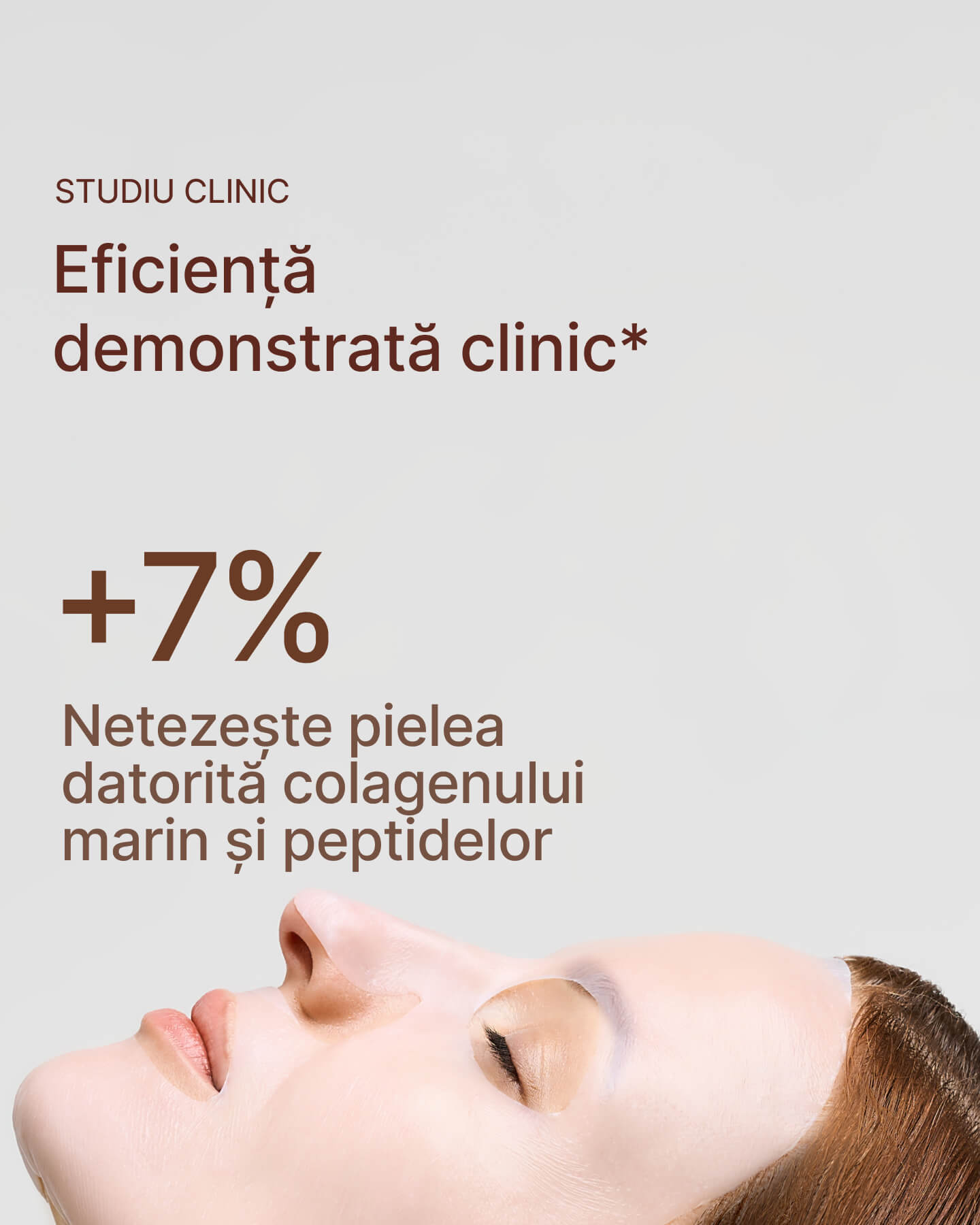 The Collagen Mask a fost gândită pentru o îngrijire premium a pielii, fiind realizată din bio-celuloză de înaltă calitate și infuzată cu un ser de ingrediente active, ce includ colagen marin, acid hialuronic și complexul calmant SymCalmin®. Masca ajută la reducerea ridurilor, îmbunătățirea elasticității și conferă un aspect radiant și sănătos.